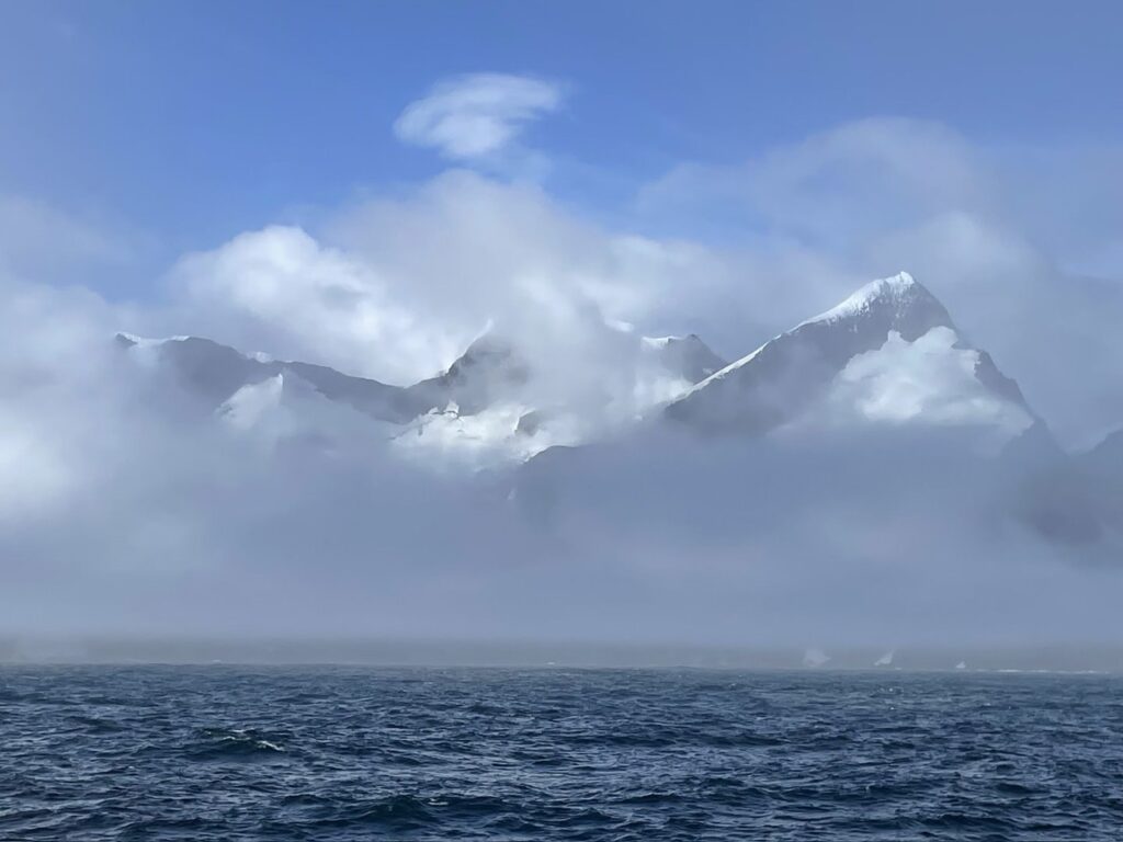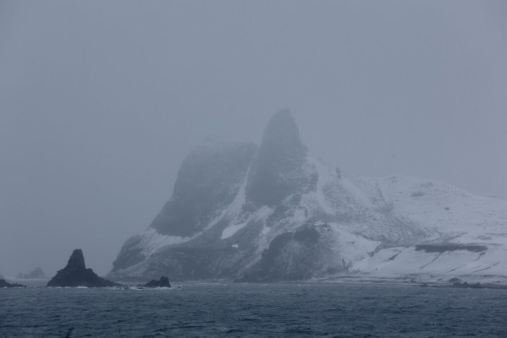 Pure Antarctica with snow, mist and cold wind