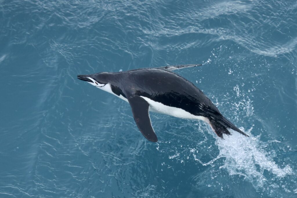 Jumping and swimming Chinstrap Penguin