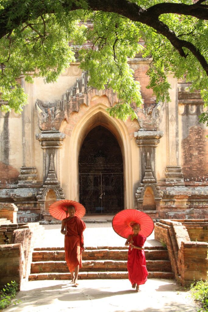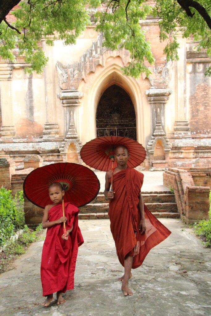 Monks walking around the temple